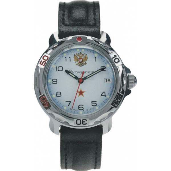 Механические часы Восток Командирские 811323 с гарантией. Корпус из высокопрочной стали с антикоррозийными свойствами. Ремешок из натуральной кожи черного цвета. Циферблат с арабскими цифрами и гербом России. Водонепроницаемость часов составляет 3 ATM. Минеральное стекло, устойчивое к появлению царапин.