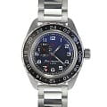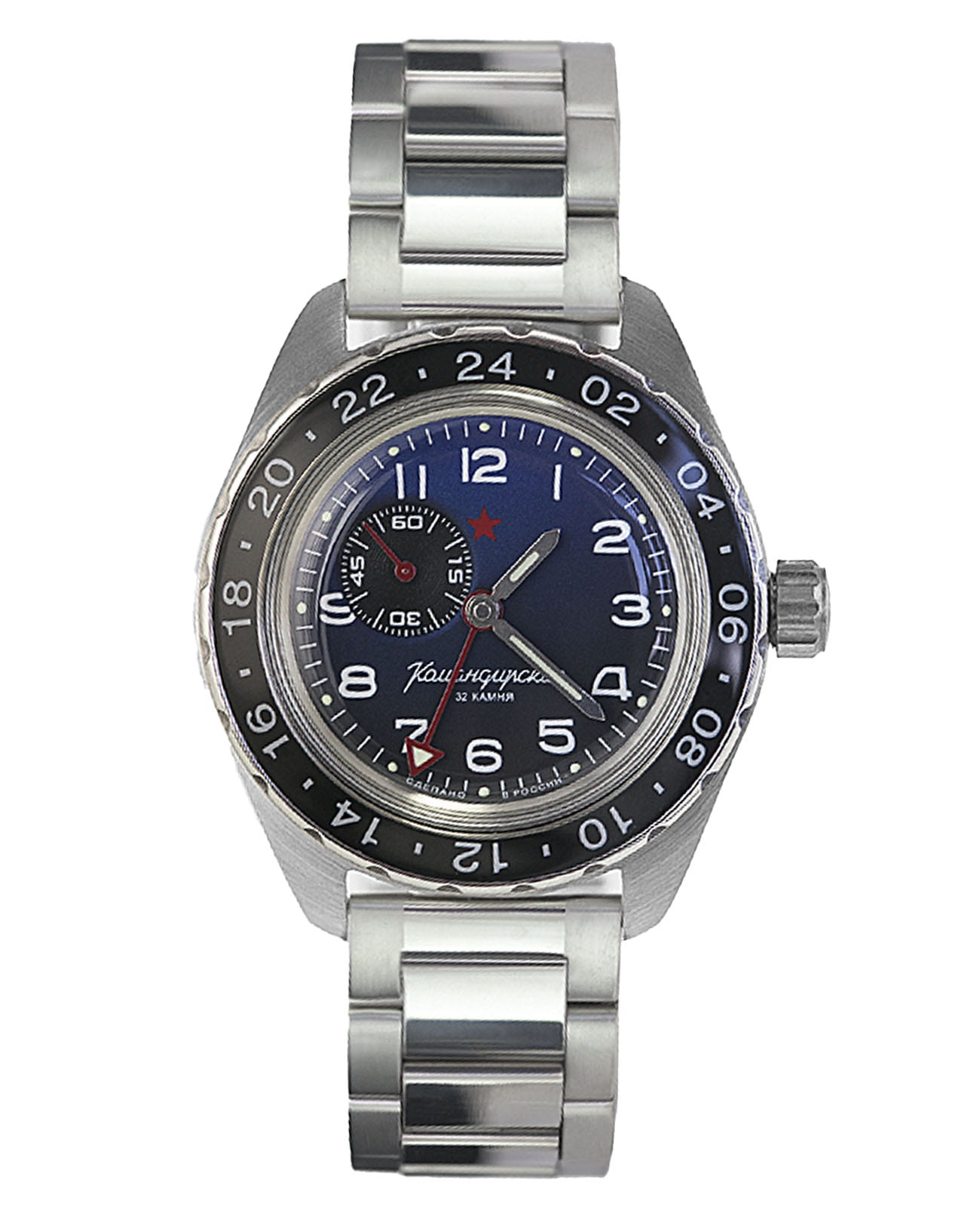 Мужские российские механические наручные часы Восток Командирские 02018А, механический механизм (автоматический калибр) с высокой точностью. Класс водозащиты: 200 метров, позволит плавать, нырять и заниматься другими водными видами спорта. Стрелки с люминесцентным покрытиемЛюминесцентное покрытиеПозволяет считывать показания времени в темноте. Производители наносят на стрелки, часовые индексы, безель или поверхность циферблата светонакопительный состав, дающий холодное свечение.. Вращающийся безельБезельВнешний ободок, закрепляющий стекло. В спортивных часах так называется поворотное кольцо с делениями на циферблате, выполняет роль таймера – замеряет отрезки времени на шкале. Неподвижный безель – элемент декора. Однонаправленно вращающийся безель на дайверских часах позволяет фиксировать моменты погружения и выныривания на поверхность. из нержавеющей стали с PVDPVDУльтратонкое покрытие наносится в технике вакуумного напыления, сочетает в себе нитрид титана особой прочности со слоем золота или оксида хрома. Несёт в себе декоративную или защитную функцию. покрытием. Дополнительная 24-часовая стрелка. Механизм калибра 24 мм с боковой секундной стрелкой. Автоподзавод с предохранительным устройством от перезаводки пружины. Частота: 19800 полуколебаний/час. Браслет с раскладной застёжкойРаскладная застёжкаТакой тип застёжки используется только на браслетах из металла. Она никогда не раскрывается полностью, происходит разделение на 2 и более частей. Раскладывающая застёжка снизит вероятность потери часов к минимуму..