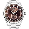 Мужские кварцевые часы Wainer WA.17000-B — это элегантный аксессуар, воплощающий швейцарское качество и безупречный дизайн. Модель выполнена в круглой форме из нержавеющей стали 316L, что делает её прочной и устойчивой к коррозии. Циферблат коричневого цвета выполнен по технологии , создающей эффект солнечных лучей, а его поверхность защищена минеральным стекломСапфировое стеклоПрочный и надёжный материал из кристалла сапфира синтетического происхождения, характеризующийся особой твёрдостью и устойчивостью к царапинам и повреждениям. с Антибликовое покрытиеАнтибликовое покрытиеСлой оксида металла в 0,13-0,3 микрон, благодаря которому стекло часов не бликует и не отражает свет. Антибликовое покрытие уменьшает отражение света в 10 раз, обеспечивая отличную читаемость показателей циферблата., устойчивым к царапинам и обеспечивающим чёткую видимость при любом освещении. Циферблат украшен штриховыми метками и имеет вынесенную секундную стрелку на отдельном циферблате, а окошко даты расположено в положении 12 часов. Рифлёная заводная головка обеспечивает удобство в использовании, а стальной браслет из стали 316L дополнен Раскладная застёжкаРаскладная застёжкаТакой тип застёжки используется только на браслетах из металла. Она никогда не раскрывается полностью, происходит разделение на 2 и более частей. Раскладывающая застёжка снизит вероятность потери часов к минимуму., что делает модель комфортной для повседневного ношения. Часы водонепроницаемы до 50 метров (, что позволяет использовать их при мытье рук или под лёгким дождём. Фирменный логотип Wainer добавляет модели узнаваемости и статуса. Эти часы станут универсальным аксессуаром для тех, кто ценит сочетание стиля, функциональности и швейцарского качества — идеальный выбор для повседневной носки и деловых встреч.