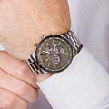 Мужские наручные часы-хронографХронографФункция позволяет измерять отрезки времени с особой точностью: часы, минуты, секунды. Верным признаком хронографа является наличие на циферблате 3 дополнительных окошек-счётчиков. WA.19032-E с надежным кварцевым механизмом. Корпус часов изготовлен из нержавеющей стали 316L. Стальной браслет на застежке "бабочке". Окошко даты находится в между 4 и 5 часами. Сапфировое стеклоСапфировое стеклоПрочный и надёжный материал из кристалла сапфира синтетического происхождения, характеризующийся особой твёрдостью и устойчивостью к царапинам и повреждениям.. Уровень водозащиты: 100 метров, позволит плавать, нырять и заниматься другими водными видами спорта. 12 и 24-часовой формат времени. БезельБезельВнешний ободок, закрепляющий стекло. В спортивных часах так называется поворотное кольцо с делениями на циферблате, выполняет роль таймера – замеряет отрезки времени на шкале. Неподвижный безель – элемент декора. Однонаправленно вращающийся безель на дайверских часах позволяет фиксировать моменты погружения и выныривания на поверхность. с PVD-покрытиемPVDУльтратонкое покрытие наносится в технике вакуумного напыления, сочетает в себе нитрид титана особой прочности со слоем золота или оксида хрома. Несёт в себе декоративную или защитную функцию.. Стрелки с люминесцентным покрытиемЛюминесцентное покрытиеПозволяет считывать показания времени в темноте. Производители наносят на стрелки, часовые индексы, безель или поверхность циферблата светонакопительный состав, дающий холодное свечение.. Встроенный Второй часовой поясВторой часовой поясФункция, позволяющая отображать время двух часовых поясов одновременно., секундомерСекундомерСекундоме́р — прибор, способный измерять интервалы времени с точностью до долей секунды. и тахиметрТахиметрРазмеченная шкала, располагается на ободке или безеле часов. Тахиметр позволяет рассчитать скорость на определённом участке пути, расстояние измеряется в километрах или милях..
